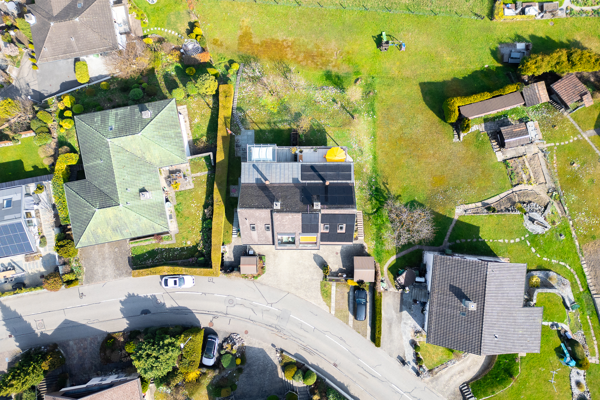 - 4 Aussenparkplätze: 1 Aussenparkplatz wird durch den Nachbar benutzt (Eintrag als Dienstbarkeit im Grundbuch)