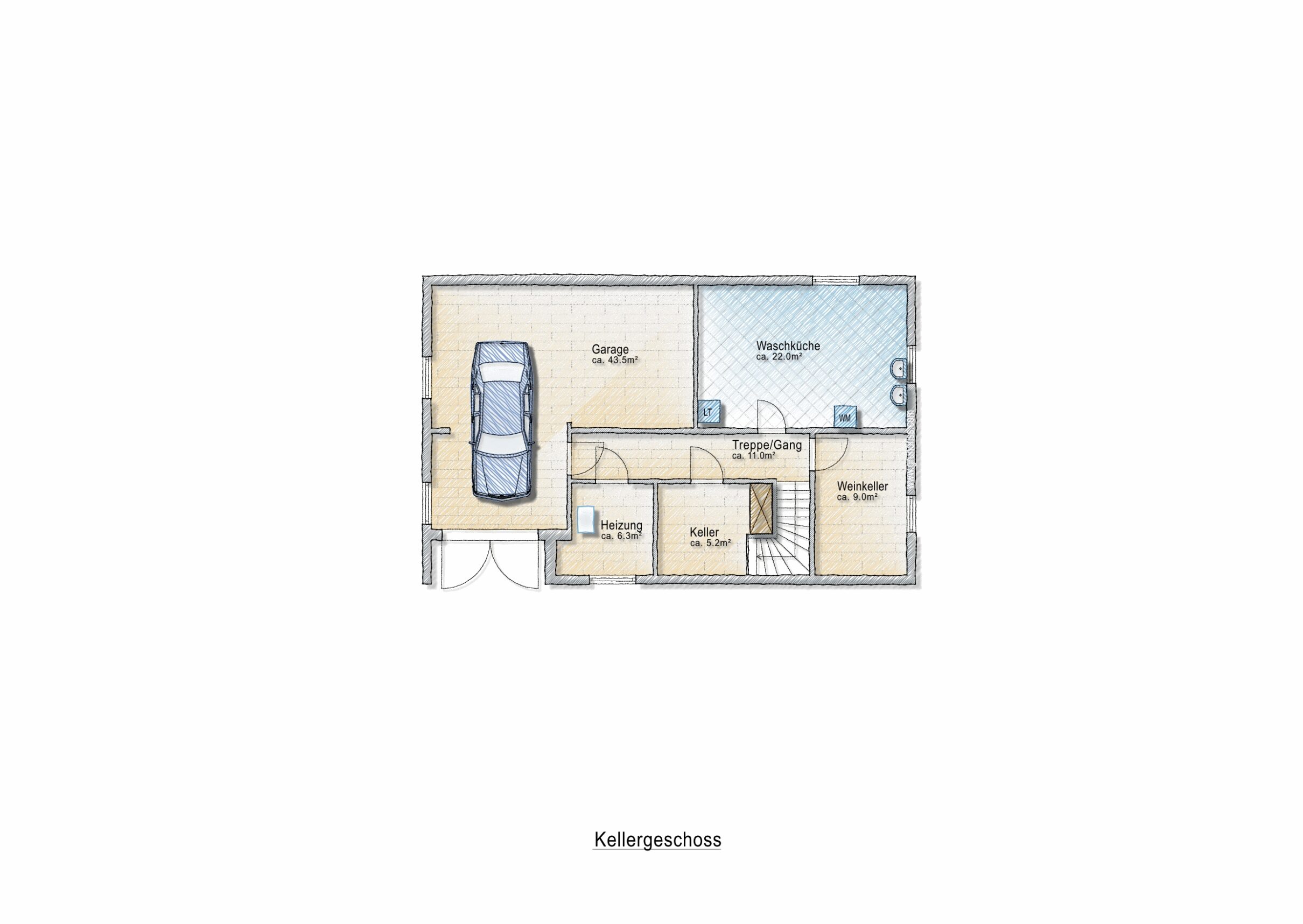 Im Untergeschoss stehen Ihnen neben der Garage ein Keller, ein Heizungsraum, ein Weinkeller und eine Waschküche zur Verfügung.