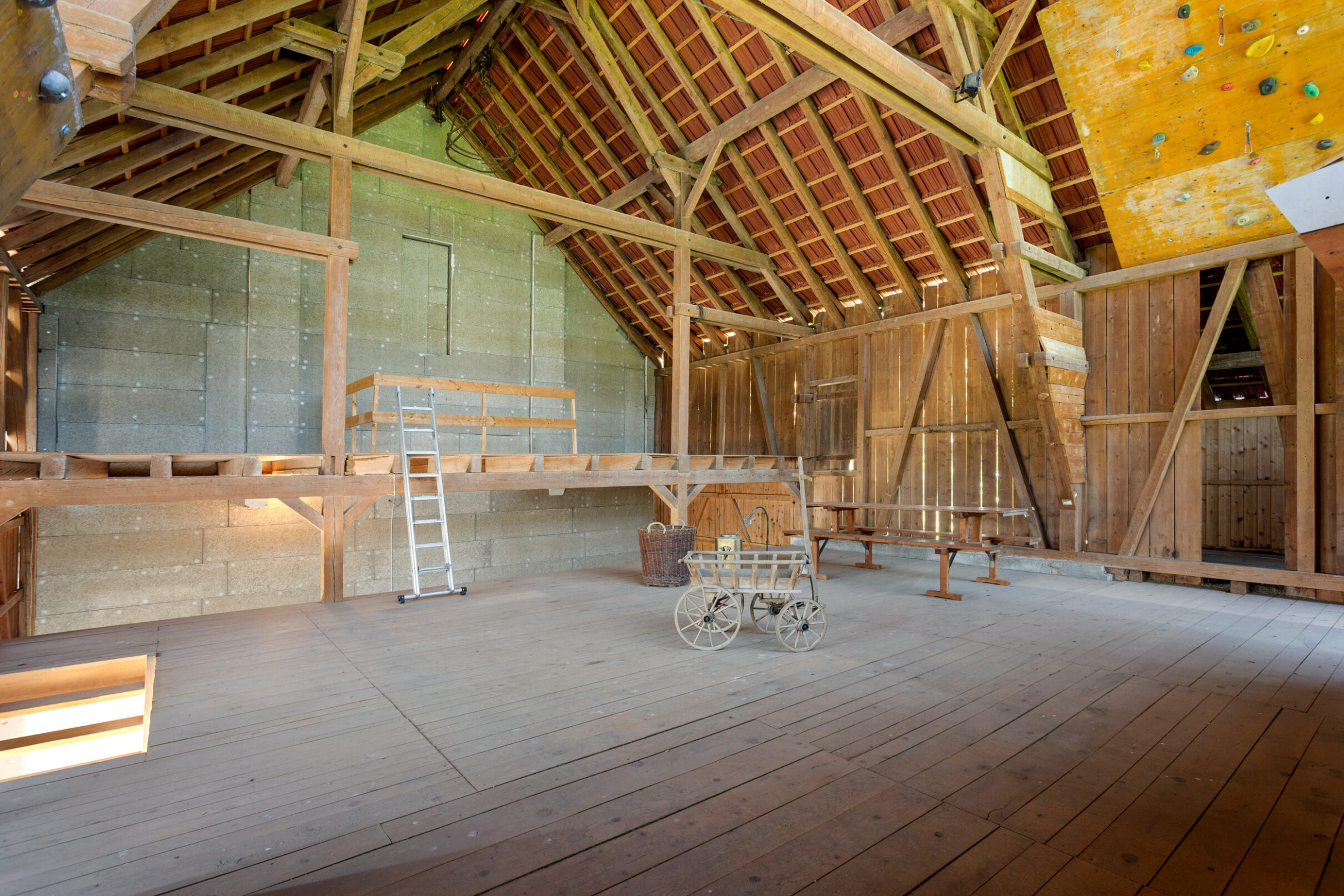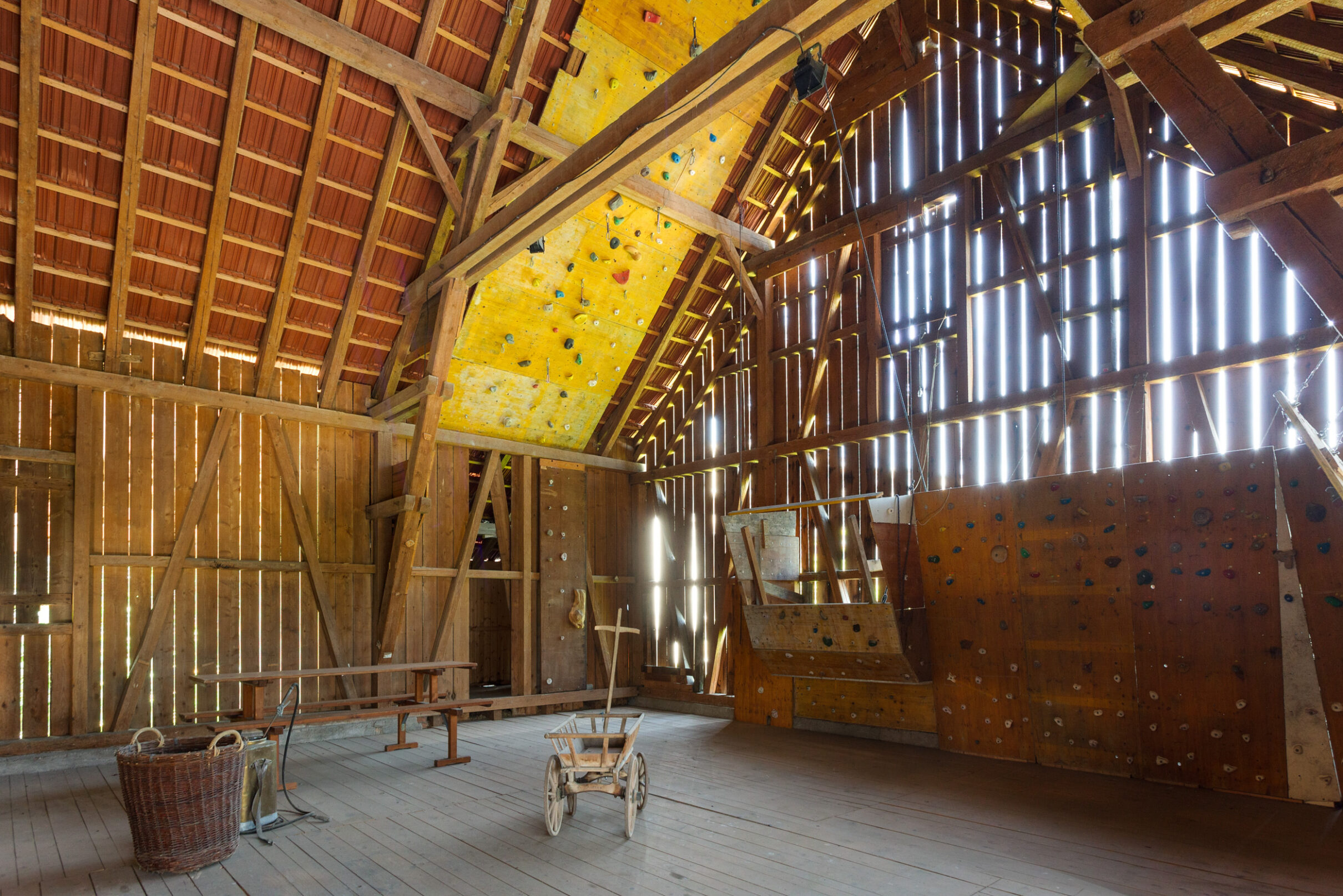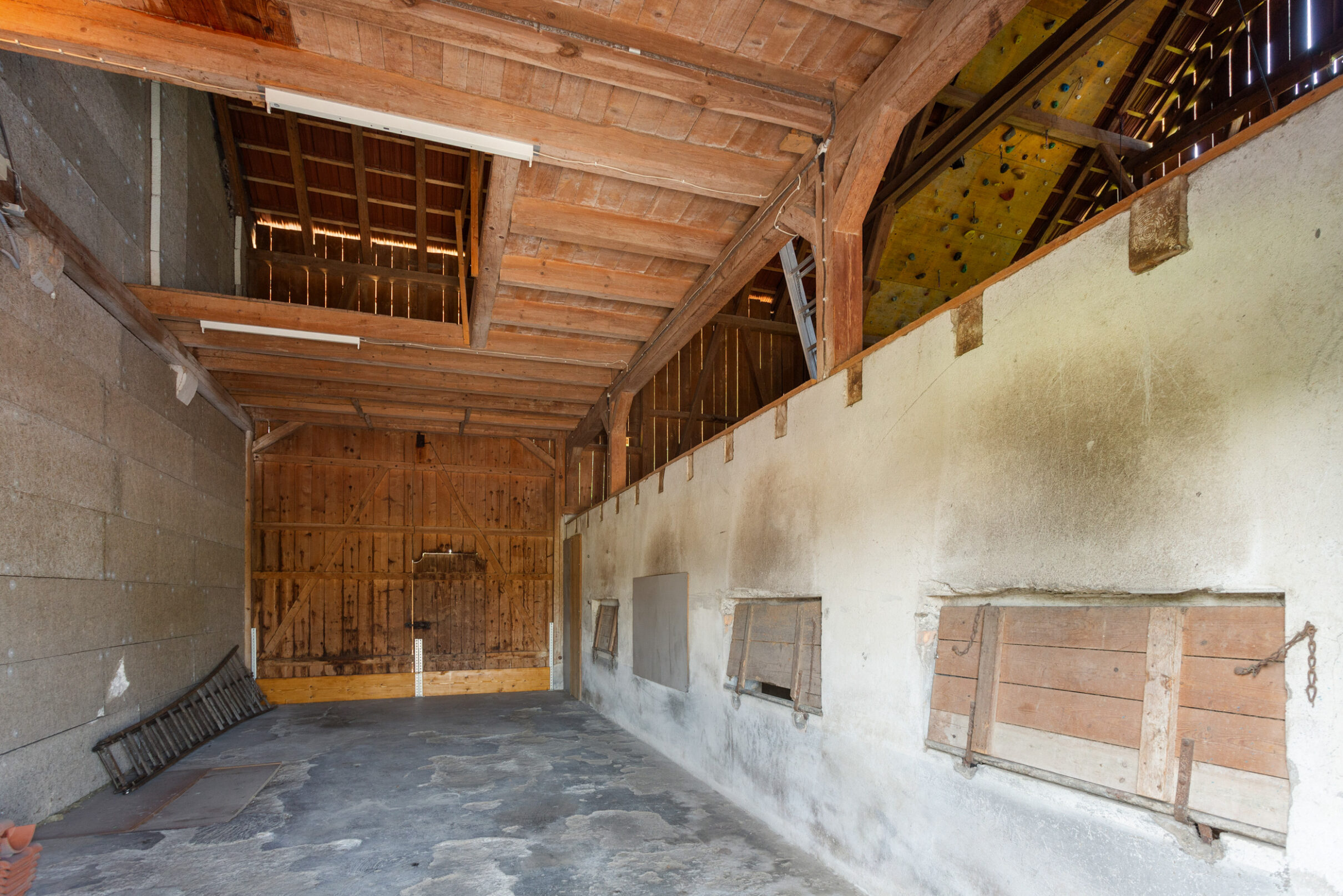 Die angrenzende Scheune bietet mit ihren diversen Räumlichkeiten viel Freiraum für grosse Ideen und kreative Projekte. Ebenfalls verfügt die Scheune über eine integrierte Kletterwand, die sportliche Möglichkeiten eröffnet und das Objekt zusätzlich aufwertet. Mehr Details dazu finden Sie im Grundriss auf den Seiten 6, 7 und 8.