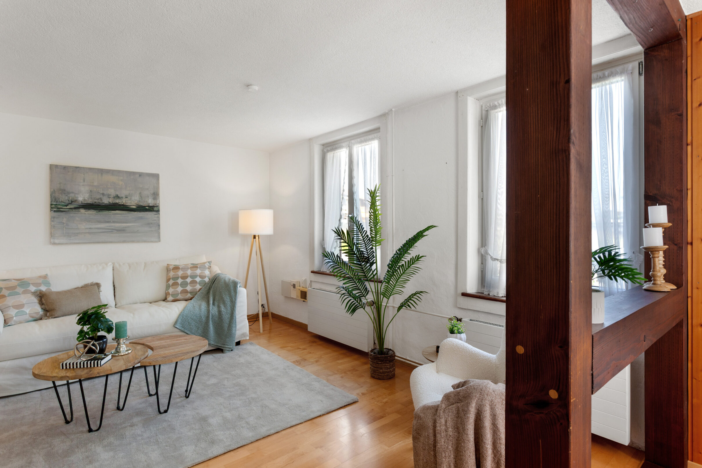 Die hellen Räume, die liebevollen Details und der funktionale Grundriss sorgen für ein wohnliches Ambiente. Die grosszügigen Fenster in nahezu jedem Raum sorgen für viel Tageslicht und schaffen eine angenehme Wohnqualität.