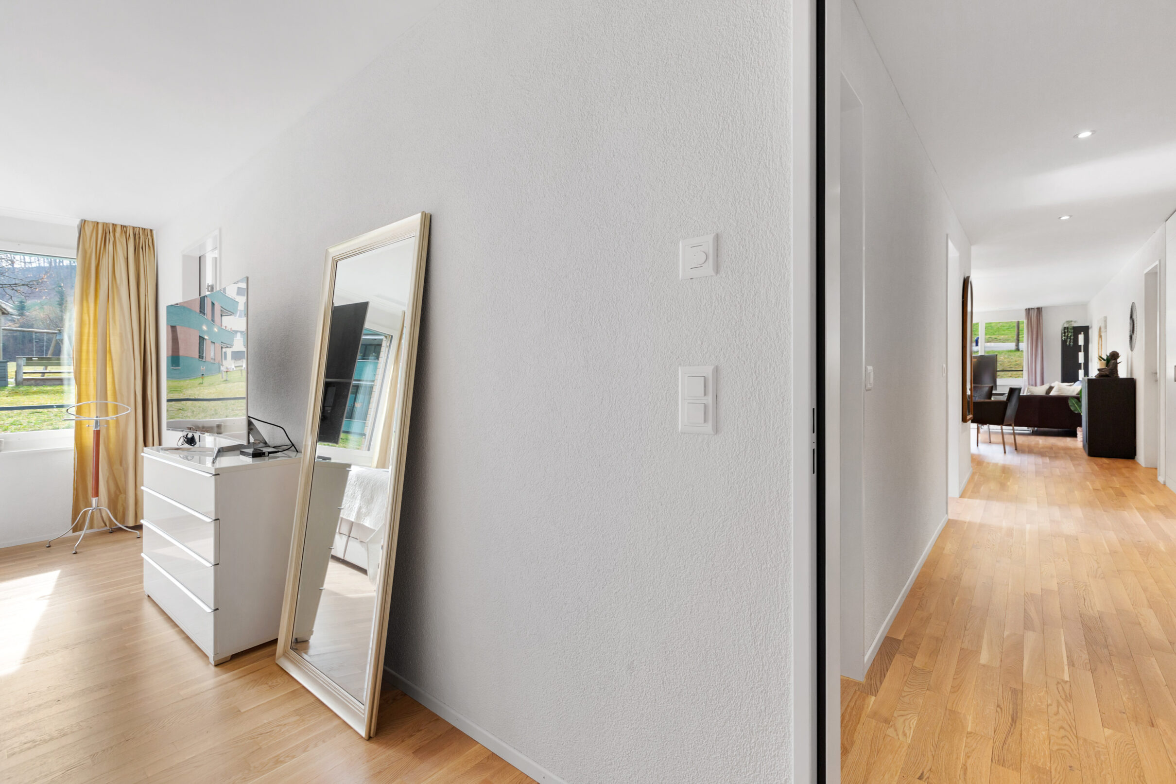Die Wohnung ist Minergie zertifiziert, ein Qualitätslabel. Im Zentrum steht der Wohnkomfort der Bewohner. Ermöglicht wird dies durch eine hochwertige Bauhülle und eine systematische Lufterneuerung. Helles Eichenparkett , moderne Deckenlichtspots sowie eine individuell regulierbare Bodenheizung unterstreichen ihren gehobenen Ausbaustandard.