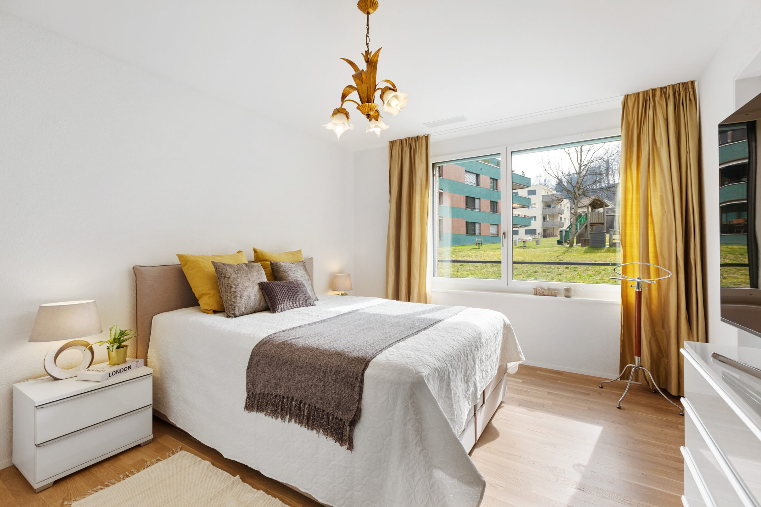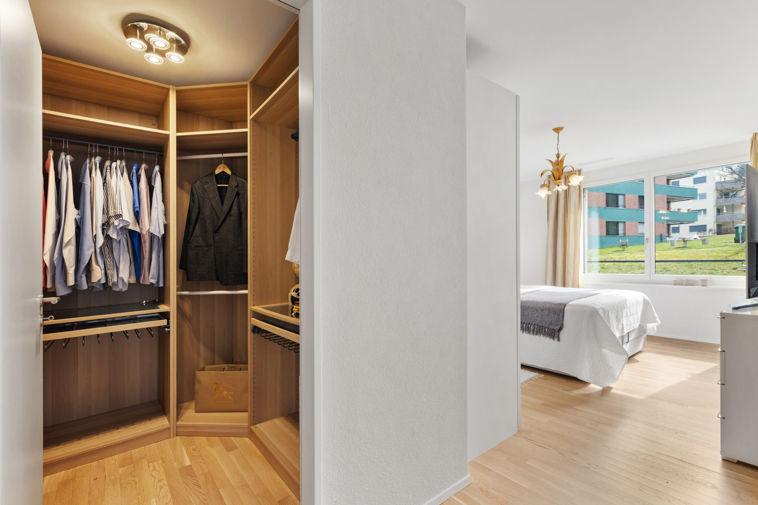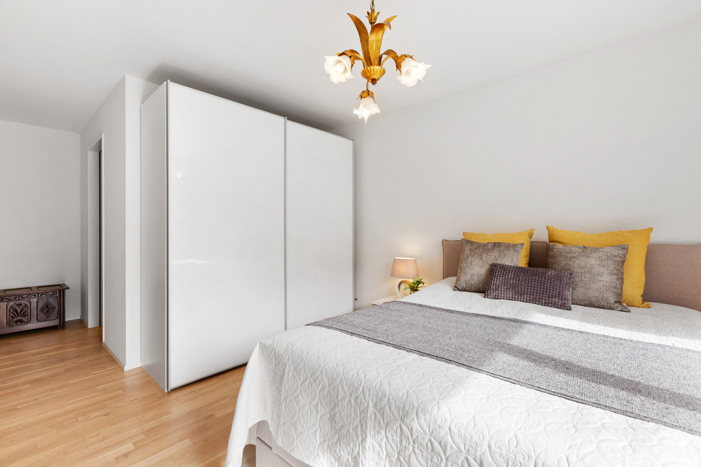 Der private Bereich umfasst zwei gut proportionierte Schlafzimmer. Ein besonders angenehmer Rückzugsort mit viel Privatsphäre ist das geräumige Hauptschlafzimmer mit integrierter Ankleide und direktem Zutritt zum Bad.