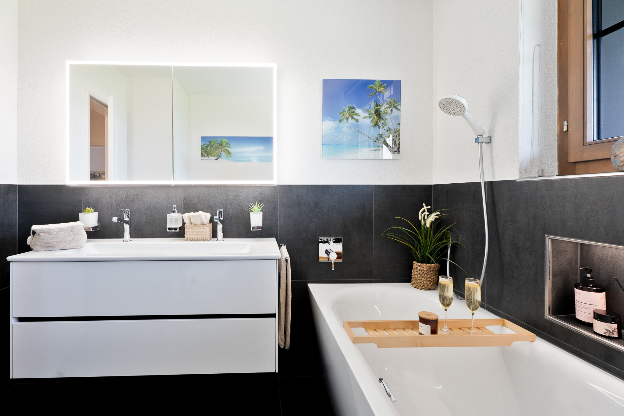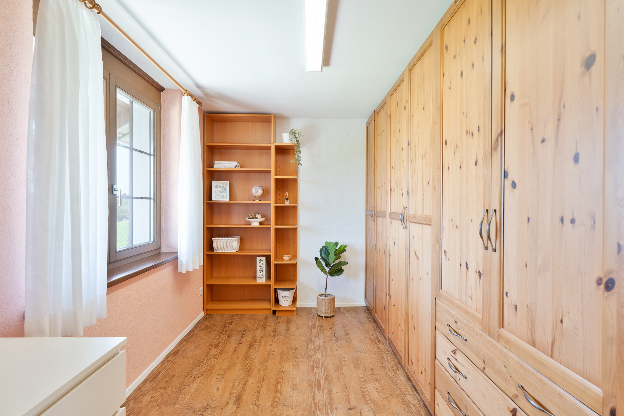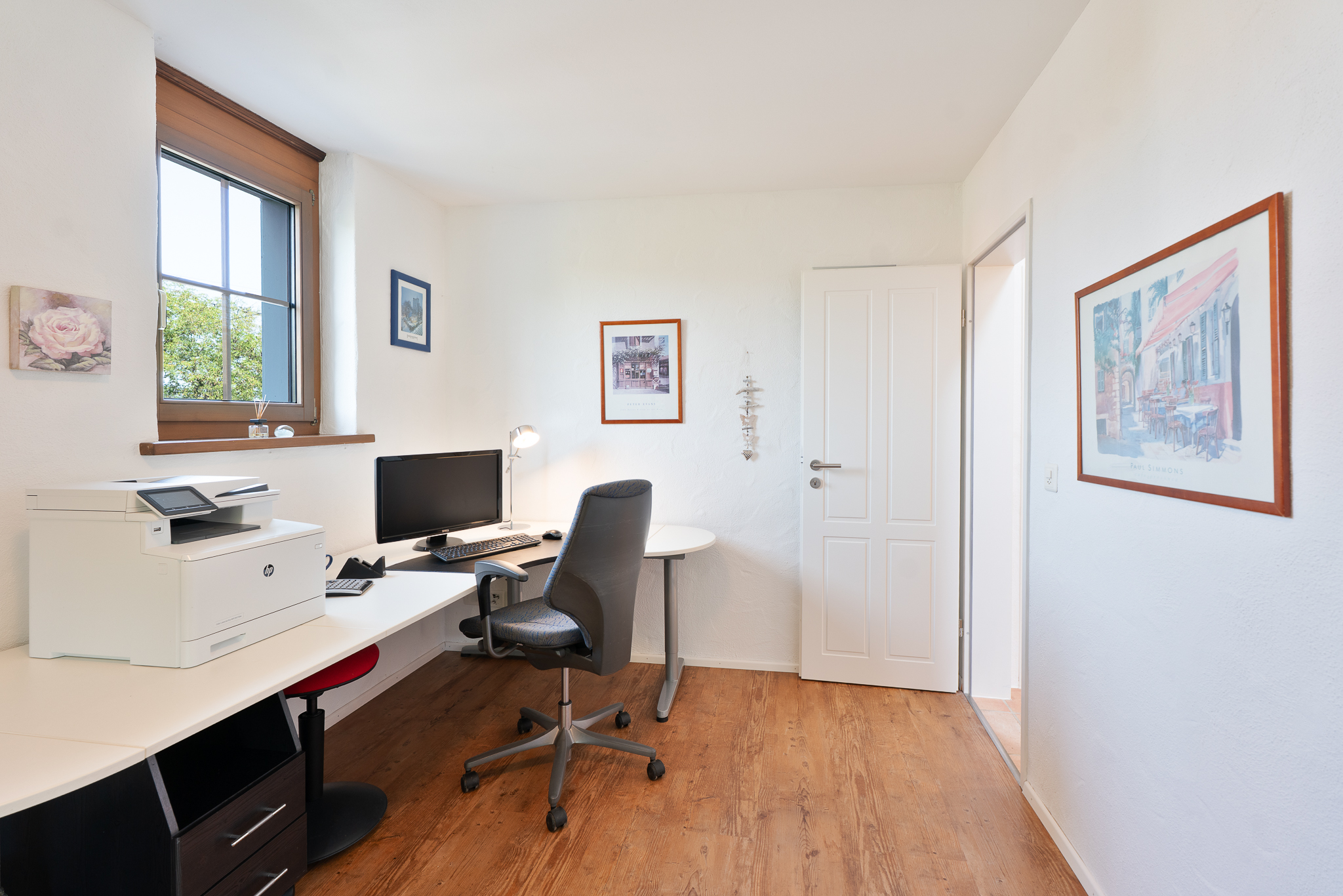 Ein heller Raum erstreckt sich im ausgebauten Dachstock mit seinen charmanten Dachschrägen über die gesamte Wohnfläche. Er ist ideal als Atelier, Hobbyraum oder zusätzlicher Wohnbereich geeignet. Die Installation für eine Bodenheizung und Wasseranschlüsse ist bereits vorbereitet. Das Untergeschoss bietet Ihnen neben Waschküche und Schutzraum-Keller ein Weinlager sowie einen grossflächigen Raum zur flexiblen Nutzung.