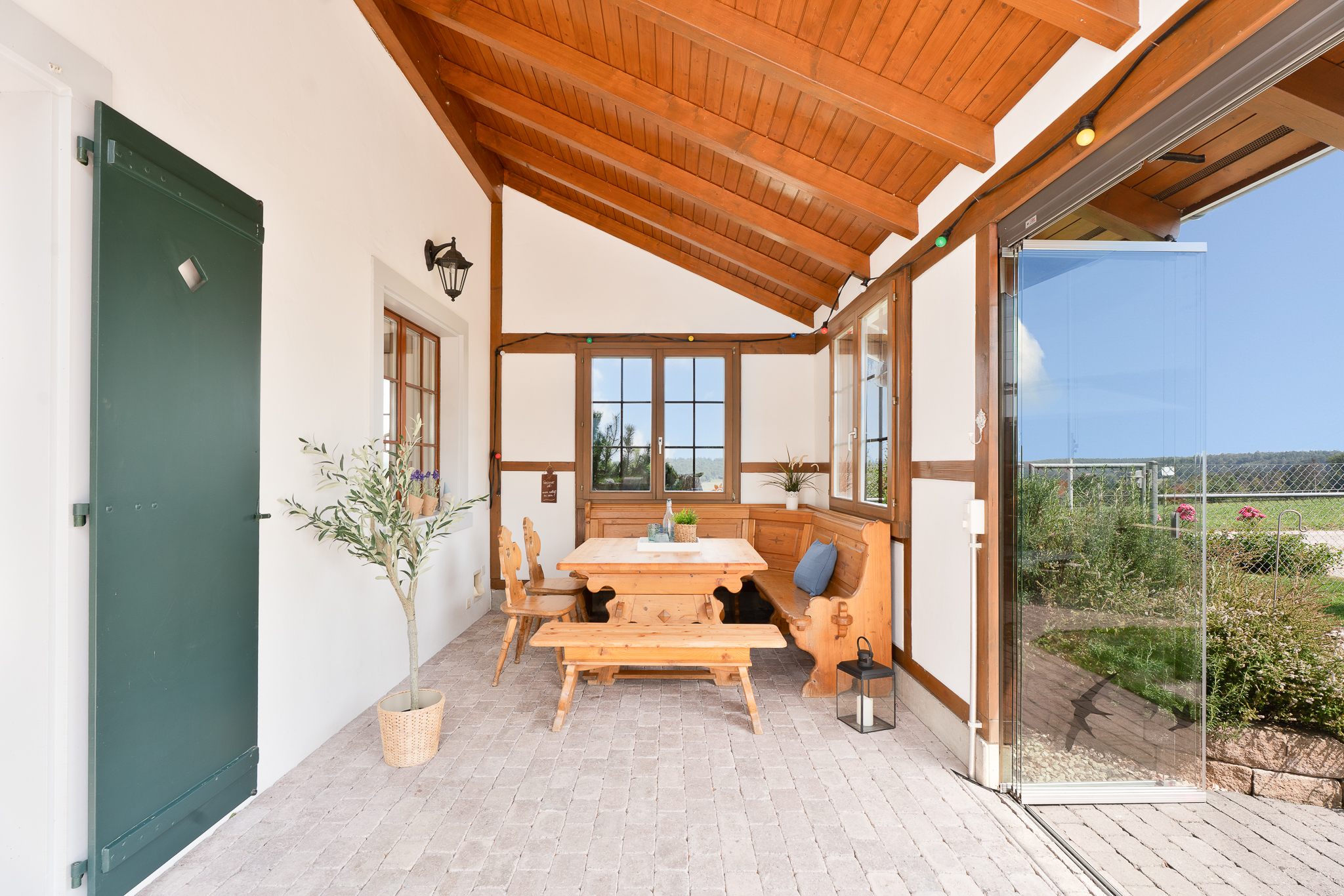 Unbeheizter Wintergarten mit Glasschiebetüren zu zwei Seiten